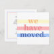 Vi har flyttat en modern och enkel inbjudan i pastel och färg till mjuk gult, rosa och blått med djärvt "vi har flyttat" typsnitt. Skicka det här till dina vänner och skriva din nya adress på baksidan.