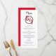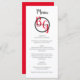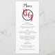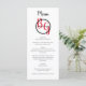 Den här designen har en elegant som ändå är enkel arrangemang av bridens och gruppens personlig initialer. Par namn är omringat med ett svart ring och placerat ovanpå bridens och rummets första initialer i namn som visas i röd färg typografi. Den här röda, svarta och vita designen är enkel, men elegant på alla sätt. Kombinationen av färg skapar ett sofistikerat, trendig och chic stil. Menykort för elegant bröllop med modernt inslag. Den enkla uppställningen av typografin ge är ett distinkt stil. Det finns också möjlighet att matcha bröllopsinbjudningar och andra artiklar i kontorsartiklar.