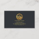 På andra sidan, i en liknande grått-mörk-täckning, är guld logotypen överst och följs av namn och kontaktuppgifter.