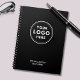Enkel svart anteckningsbok med professionell logotyp, perfekt för företag eller evenemang. Lägg bara till din egen logotyp och text. Om du behöver ytterligare hjälp med anpassning, använd knappen nedan för att kontakta mig.