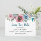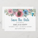 Enkel QR-kod Blå och Rosa Blommigt Bröllop Spara Datumet
