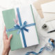 Den ljusa roligten strimlade papper i grönt och vit färg. Matchande märkre för "glädjen"-gåva finns tillgängliga.