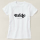 Det här trendiget är en enkel t-shirt med ord-briden i återsvart typografi, tillsammans med ett utrymme för hennes namn.