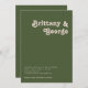 Enkel retro Vibes | OLIV GRÖNT AVSLAPPNAD BRÖLLOP Inbjudningar