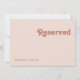 Den här enkla reflexen | rosa-reserverat tecken är perfekt för dina vintage-bröllop för klassisk funky. Utformningen har ett minimalistiskt hippie rustic boho-teckensnitt. Neutralten sydvästra ökenpaletten och den jordnära bohemiska halvsekelsmarkeringen i färg kombinerar en perfekt och en minimal modern western bestämmelseort. Du kan gärna ändra färg genom att lägga till egna teckningar, bilder eller foton. Om du har några frågor om produktens utformning, så var vänlig och kontakta oss!