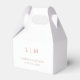 Enkel än elegant bröllop-favoritruta med en modern minimalistisk utformning med ditt två brev monogram tillsammans med namn och datum. All design inslag är i faux ro guld över en vit bakgrund och kan ändras i verktyg för designredigering. De här klassiska bröllopsfavoritboxarna går bra tillsammans med alla stil i bröllop.