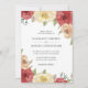 Rustik bröllopsinbjudan med blommigt-hörnet gräns i burgundi, mauve, elfenben och beige ro och grönt. Tillbaka är en muterad mauve.