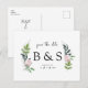 Enkelt Monogram/Initialer Bröllop Foliage & Rosa Blommigt Spara datum. Webbplats. Vykort.