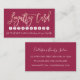 Det här är perfekten Loyalty Rcount Card för ett trendig, en snyggt och ett modernt företag. Den här designen har chic-, söt- och gigantisk tryckt brushstroke-typografi för ro på en enkel mörks rosa-bakgrund. Dessa kort kommer att lägga till att personlig och professionell berör din affärs- och karriärreklam. ***VIKTIG DESIGN-ANMÄRKNING: Om du vill ha en anpassad design-begäran, t.ex. matchande produktbegäranden, färg-ändringar, placeringsändringar eller någon annan ändringsbegäran, klickar du på knappen "CONTACT" eller skickar e-post till designern direkt på lafemme.art@gmail.com. Du kan till och med skicka e-post till henne om du vill ha en helt ny anpassningsbar och design.