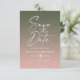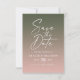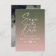 Enkelt Ombre-övertoningskort för Rosa och Mörk grönt Bröllop spara datum. Den här moderna men klassiska designen är minimalistisk och elegant med en enkel gradienttoning och en vacker kalligrafi namnteckning skripttext. Visas i Dusty Rosa & Mörk Forest Grönt Färg Palette, med Monstera Mörk Hunter Grönt och Light Bröllop Blek Rosa. Innehåller även ett foto av ett par anpassningsbar på baksidan. Eller göm helt enkelt att lagrar ska ha en övertoningsbakgrund istället. För att se mer, sök efter Chic Paperies samlingar i bröllop 2022 för att se alla de trendmönster som finns och bröllop färg för detta år.