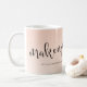 Elegantens minimalistiska makeup-mugg-design som innehåller ditt namn och texten i ett modernt handskrivet skript, övertoningsbakgrund för rosa.