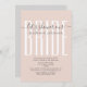 Enkel, elegant, typografi, minimal rosa och vit inbjudningskort för möhippan med grått modernt skript.