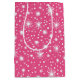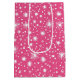Det här djärva och pulserande mönster har en utspridd arrangemang av vita stjärnor, punkter och små stjärnor på en ljus rosa bakgrund. Designen har en roligt, känns igen med sina oregelbundna former och spelande stjärnmotiv