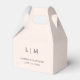 Enkel än elegant bröllop-favoritruta med en modern minimalistisk utformning med ditt två brev monogram tillsammans med namn och datum. All inslag är i grått över rosa och kan ändras i verktyg för designredigering. De här klassiska bröllopsfavoritboxarna går bra tillsammans med alla stil i bröllop.