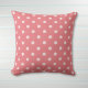Vacker och enkel mjuk rosa kudde för att dekorera ditt favoritrum. Den har ett mönster av bruna prickar i mjuk rosa på en mörkare rosa bakgrund.