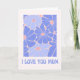 Elegant, hälsningskort för blommigt Mors dag med en söt blomning av blommor av blå rosa med grönt löv. "KÄRLEK DU MORSA" visas på framsidan i modern kalligrafi. Inuti den lämnat - redigera egna foto eller ta bort och använda utan ett fotografi av personligen. På högerna kan du ändra texten och skriva ut den. Eller radera och skriva med egna händer. Ha underbar ge tid. Tack för att du stannar 23 blommar i butiken. De här söta Mors dag-korten gör henne till sin dag.