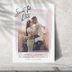 Med hjälp av Rustic-inspirerad, fotomall sparas datumdesignen, med plats för ditt favoritfoto av par och kompletteras med en unik handskriven typografi och en penshstroke för rosa vattenfärg. Ett underbart sätt att informera din familj och dina vänner om ditt kommande bröllop firande.
