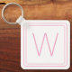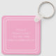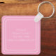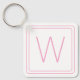 Den här enkla och moderna engrammade nyckelkedjan har ett minimalt monogram som du kan anpassa med ditt val av initial på framsidan och kontaktinformation på baksidan i söt rosa och vit.