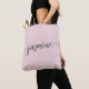 Feminint minimalistisk rosa monogram namnteckning personlig toteväska. Denna design medförsteförnamnet i en vacker handstilsbetonad font med svans på pastell dammig rosa eller ljus rosabakgrund. Jättefin present till födelsedag, bröllop, jul, 16-årsfest, brudvisning, möhippa eller för examen och den är för tjejen som gillar rena minimalistiska saker.