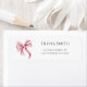 Söt och enkel returadressetikett med en rosa rosett och professionell typografi. Illustrerad och designad av Patricia Alvarez.