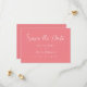 Enkelt och modernt vitt på rosa bakgrund bröllop ”Spara Datum”. Perfekt för bröllop under alla säsonger.
