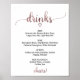 Denna enkla roségulds kalligrafi dricksmeny skylt är perfekt för ett modernt bröllop. Den minimalistiska designen har en elegant borstskrift och ett vackert feminint hjärta med falsk roséguld folie. Anpassa skylten med drycker som finns tillgängliga på er mottagning.