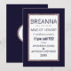 Moderna, enkla och eleganta falska tryckta roséguldfärgade randiga konturer på marinblå och vita "Vill du vara min brudjungfru?"-inbjudningar. Denna klassiska och sofistikerade design är perfekt för den klassiska, trendiga och stiliga blivande bruden som vill få sin brudjungfru att känna sig speciell och älskad. Personifiera med ditt eget meddelande på framsidan och en anpassad monograminitial på baksidan. Allt foto print design.