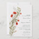 Boho Fall Wedding-inbjudan har blommigtar, löv och en sjudande vallmo som reflekterar en varm, jordisk färg-palett och en konstnärlig, bohemisk stil. Det anger tonen för en romantisk höst bröllop.