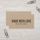 Snyggt Rustic social media Kraft-affärskort med ord "Made with Kärlek" i fet stil och ett snyggt-skript för ditt namn eller för att lagra namn i mörk grått. Det handgjorda affärskortet i snyggten är perfekt för konstnärer och konstnärer som vill ha ett sätt att låta människor som de möts i det verkliga livet veta hur de hittar dem och deras online för arbete och portfölj och på social-medier. Det är enkelt att anpassa. Du kan enkelt ersätta platshållartexten och lägga till egna uppgifter. Om du vill ha fler alternativ, t.ex. att ändra teckensnittet och dess storleka storlek, klickar du på knappen "Anpassa det". *Observera att Zazzle Watermark som visas i zoomförhandsvisningen INTE visas på den slutliga tryckta produkten © Rosewood and Citrus