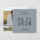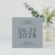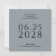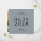 Ett enkelt, elegant och smakfullt bröllop spara datum-kort i dammigt blått med svart text och med ett foto av paret lycklig på kortets baksida. Textmallen är enkel att fylla i med din information och datumet visas i stor fetstilt text för att hjälpa dina framtida gäster i bröllop att planera för din stora dag. Kortets unika kvadratiska form ger ett modernt stil och lämnar ett underbart intryck för mottagarna.