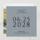 Ett enkelt, elegant och smakfullt bröllop spara datum-kort i dammigt blått med svart text och med ett foto av paret lycklig på kortets baksida. Textmallen är enkel att fylla i med din information och datumet visas i stor fetstilt text för att hjälpa dina framtida gäster i bröllop att planera för din stora dag. Kortets unika kvadratiska form ger ett modernt stil och lämnar ett underbart intryck för mottagarna.