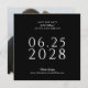 Ett enkelt, elegant och smakfullt bröllop spara datum-kort i svart med vit text och med ett foto av paret lycklig på kortets baksida. Textmallen i vitt är lätt att fylla i med din information och datumet visas i stor fetstil för att hjälpa dina framtida gäster i bröllop att planera för din stora dag. Kortets unika kvadratiska form ger ett modernt stil och lämnar ett underbart intryck för mottagarna.