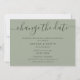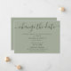 Meddela att er bröllopsdag har skjutits upp med detta minimalistiska sagegröna kort med modernt skrivstil.