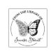 Denna "Från bibliotekets" gummistämpel har en fjäril med blommor och ett anpassat namn.