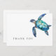Begravning, kondoleans tackkort. Familjenamn och tack på baksidan. Typografi. Akvarell Enkel. Tropisk Sea Turtle. Avliden persons namn och levnadsår.