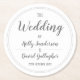 En enkel och ren silvergrå och vit design papper coaster med tydlig text.