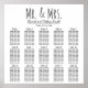 Ett enkelt, lättanpassat, svart och vitt bröllopsdiagram med ord "Mr. & Mrs" och namnen i bruden och brudgummen längst upp (ändra den här texten till vad du vill). På högerna kan du använda mallen så att du enkelt kan fylla i namnen på dina gäster vid bord. När du är klar med det väljer du poster storlekt och ser till att klicka på "Anpassa det!" om du vill ändra teckensnittet färg och stilar, ta bort bord, lägga till bord, ordna om/ändra storlek på sak, osv. om du vill anpassa det till din speciella dag!