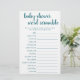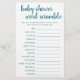 Ofördärvliga baby ord! Enkel babydusch eller gender visar ord-skramlande party-spel (med svar nedan) med en roligt, avslappnad handskript. Den klassiska designen innehåller ett modernt hanterat textöverlägg för citattecken. För andra färg eller matchande produkter, gå till butiken JustFharryn Zazzle eller kontakta designern, c/o Fharryn@yahoo.com Alla höger reserverade. #bohochic #zazzlemade ANSWER NYCKEL: Bib, Play Pen, Rattle, Cradle, Shampoo, Baby Grind, Blanket, One-sie, Diaper Bag, Barnvagn, Baby Monitor, Lullaby, Nappar, Flaska