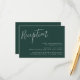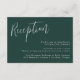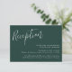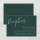 Eleganta bröllopsinbjudan kort med texten "Mottagning" i vit skrivstil på en solid skoggrön bakgrund (eller valfri färg). Anpassa de enkla bröllopskorten genom att lägga till dina mottagningsdetaljer i vit text. Designad för att samordna med vår Enkla Skrift bröllopssamling.