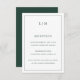 Enkel infogningskort för bröllop med modern och elegant design med ditt dubbelinitial-monogram högst upp tillsammans med information om mottagningen omgiven av en tunn ram. Alla designelement är i skogsgröna och kan ändras i designverktyget. En chic och stilren design som passar perfekt för minimalistiska par. Dessa infogningskort är ett perfekt tillägg till din svit om mottagningen kommer att hållas på en annan plats än vigseln.