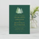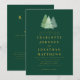 Vattenfärg enkel skog vacker grön guld Bröllop qr-kod inbjudan Inbjudan med Vattenfärg Granträd och snö och elegant Modern Typografi på mörkgrön smaragd