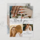 Detta enkla skript 4 Photo Collage Bröllop Tack är en Bröllop Tack-vykortsmall som innehåller 4 foto längst fram och ett foto bakåt med texten för mer avancerad anpassning av den här designen. Klicka på länken Anpassa ytterligare om du vill ändra teckensnitt, Storlek och Färg