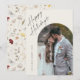 Enkel Skript Boho-båge Glad Julkort. Baksidan har vildblommuster. Klicka på knappen för personlig anpassning för att anpassa denna design med dina detaljer.