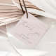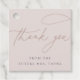 Enkla och eleganta tacksamhhetsetiketter med "tack" i modern handskriven kalligrafi på en mjuk rosa taupe-bakgrund. Personliggör med din egen text under; visas med "från den blivande fru [namn]"