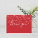 Med ett vitt skript i elegant tack vare typografi, snöflingor och ett hjärta i chic guld på en feströd bakgrund. Du kan anpassa ditt eget tack till meddelandet på motsatt sida eller om du föredrar att lägga till ditt eget handskrivna meddelande ta bort texten. Ett perfekt sätt att säga tack! Designad av Thisisnotme©