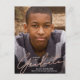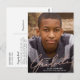 Detta enkla, moderna examens kort innehåller en falsk roséguld folie skrift överlägg och fullständigt foto. På framsidan visas "Examinand" längst ner i handskriven skrift över ett stort, vertikalt foto. Lägg till din examen kandidatnamn och foto, examensår och skola på framsidan. På baksidan kan du skriva ett längre meddelande till mottagarna och / eller inkludera födelsedagsfest detaljer.