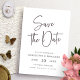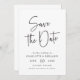 Spara datumet i enkelt skript. Detta moderna minimalistiska handskrivna manuset bröllop spara-till-datum-kort är perfekt för par som vill göra en contemporary stil påstående. Elegantens kalligrafi i kombination med den svarta och vita färg-paletten skapar en tidlös spara - det datum som gästerna inte glömmer. Gör ett djärvt påstående med denna unika och snyggt design!