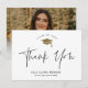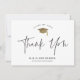 Enkel skript Svart och Vitt Foto Examen Tacksamhetskort med elegant guldfoliehatt och minimalistisk typografi. Baksidan har ett foto av examen och tacksamhetsmeddelande. Klicka på redigeringsknappen för att anpassa denna design.