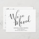Med elegantens moderna skripttypografi kan det här enkla vykortet för svartvitt och flytta vara personlig med dina nya adress och kontaktuppgifter. Designad av Thisisnotme©