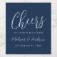Elegant bröllop vin-etiketter med texten "Skål för kärlek och lycka" i vitt skript med en marin bakgrund. Anpassa flaggorna för marinen bröllop vin med ert datum namn och bröllop.